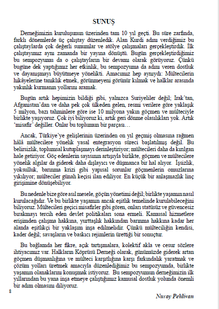 konuşmaların deşifre edilerek bir araya getirilmesinden oluşuyor. Elinizdeki bu kitap, tüm bu oturumların kayıtlarının deşifre edilip düzenlenmesiyle oluşturulmuştur. Bu kitap aynı zamanda bir dayanışma çağrısıdır. Mültecilere karşı sürdürülen kirli savaşın karşısında sesimizi yükseltmenin, hak temelli bir